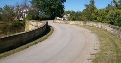 Il Ponte S attraversa Salt Fork con un design ad arco in pietra e presenta un allineamento a S creato dalle strade di approccio curve.