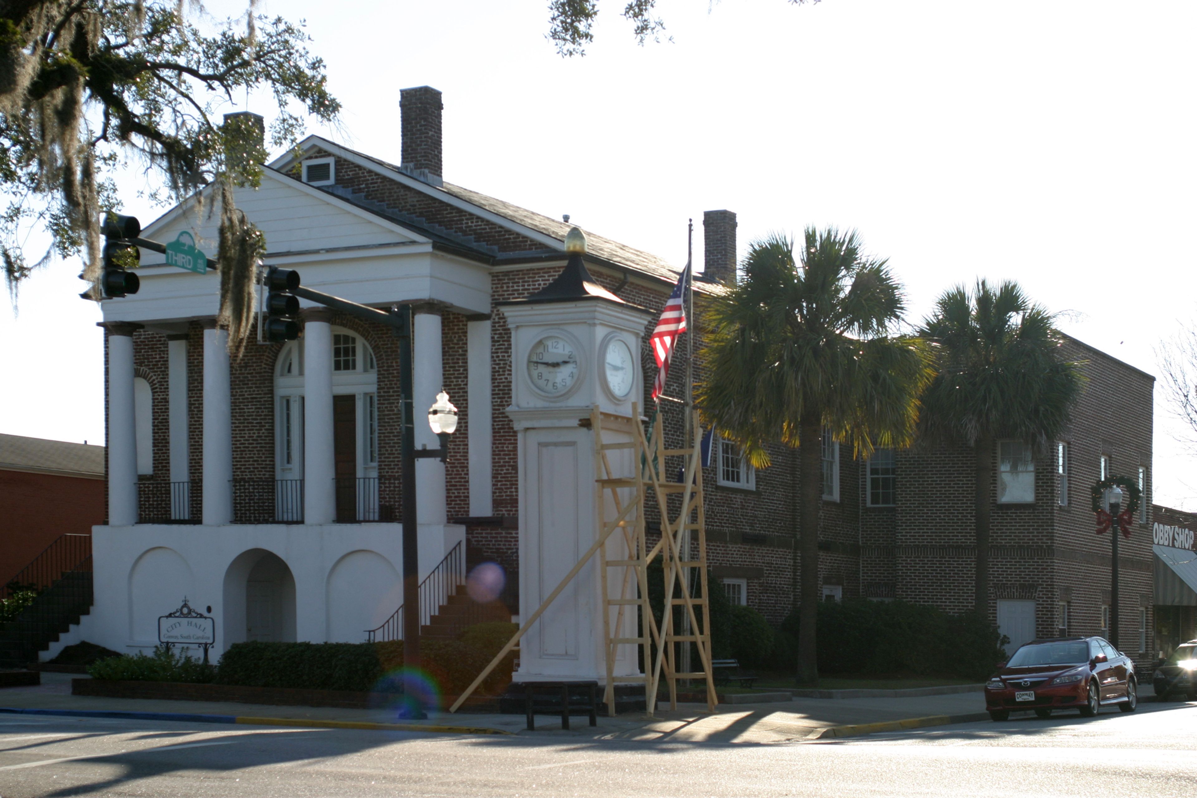 Situato al 1201 3rd Avenue a Conway, l'edificio ora funziona come municipio e accoglie i visitatori durante l'orario d'ufficio.