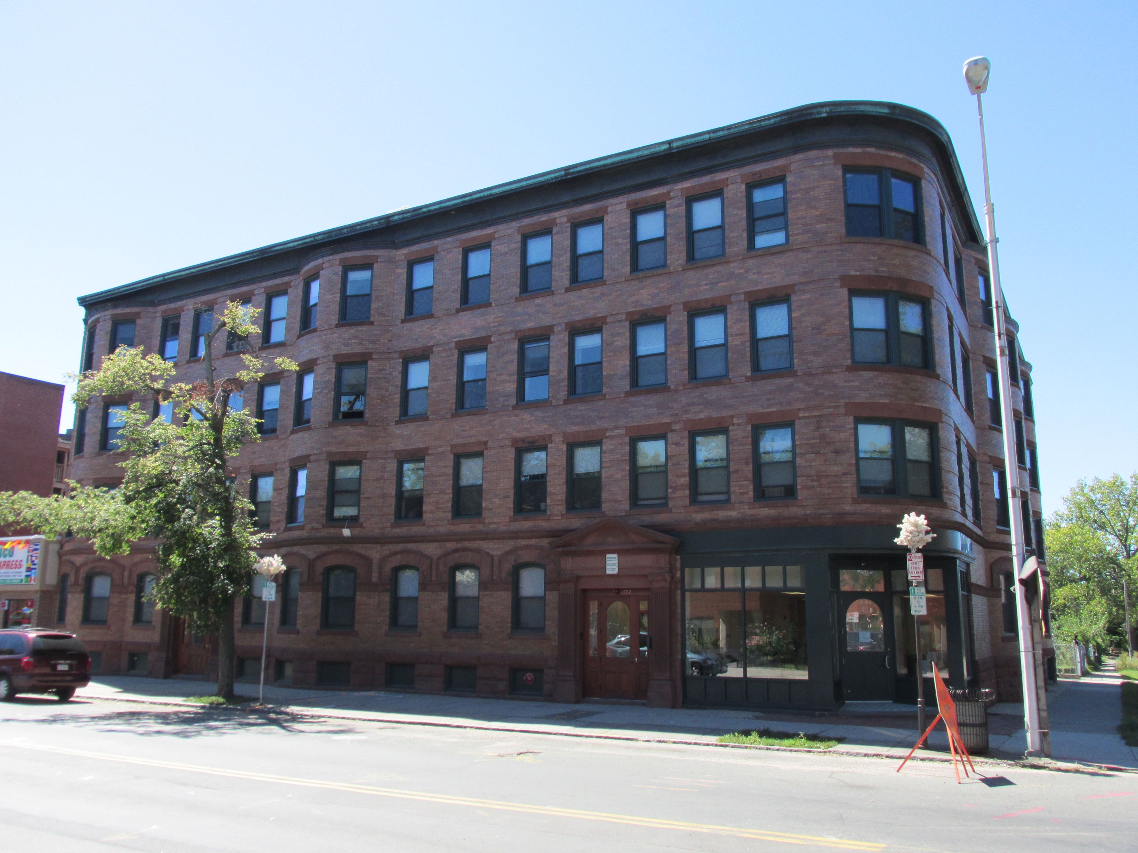 Hooker Apartments, large multiunit apartment building at the corner of Main and Greenwich Streets in the North End of Springfield, Massachusetts