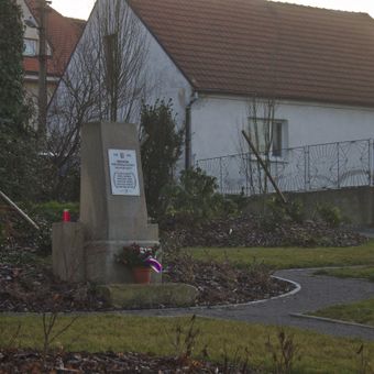 World War II memorial in Kamenné Žehrovice, pomník v parčíku před domem Karlovarská třída čp. 64