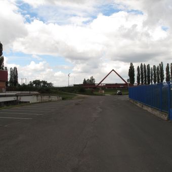 Lávka přes vstup na atletický ovál ve Slaném