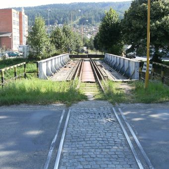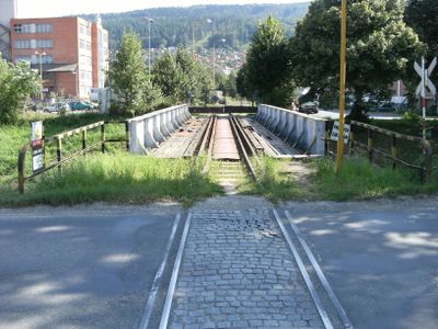 Most železniční vlečky přes Dřevnici ve Zlíně, železniční most poblíž hypermarketu Albert