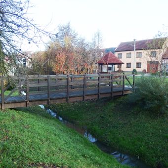 Lávka přes Hradčovický potok v Hradčovicích proti čp. 3