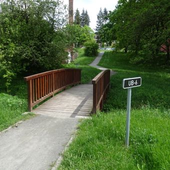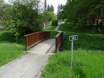 Lávka přes Vinohradský potok v Uherském Brodě pod garážemi
