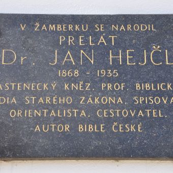 Pamětní deska Augusta Seydlera na Masarykově náměstí v Žamberku