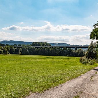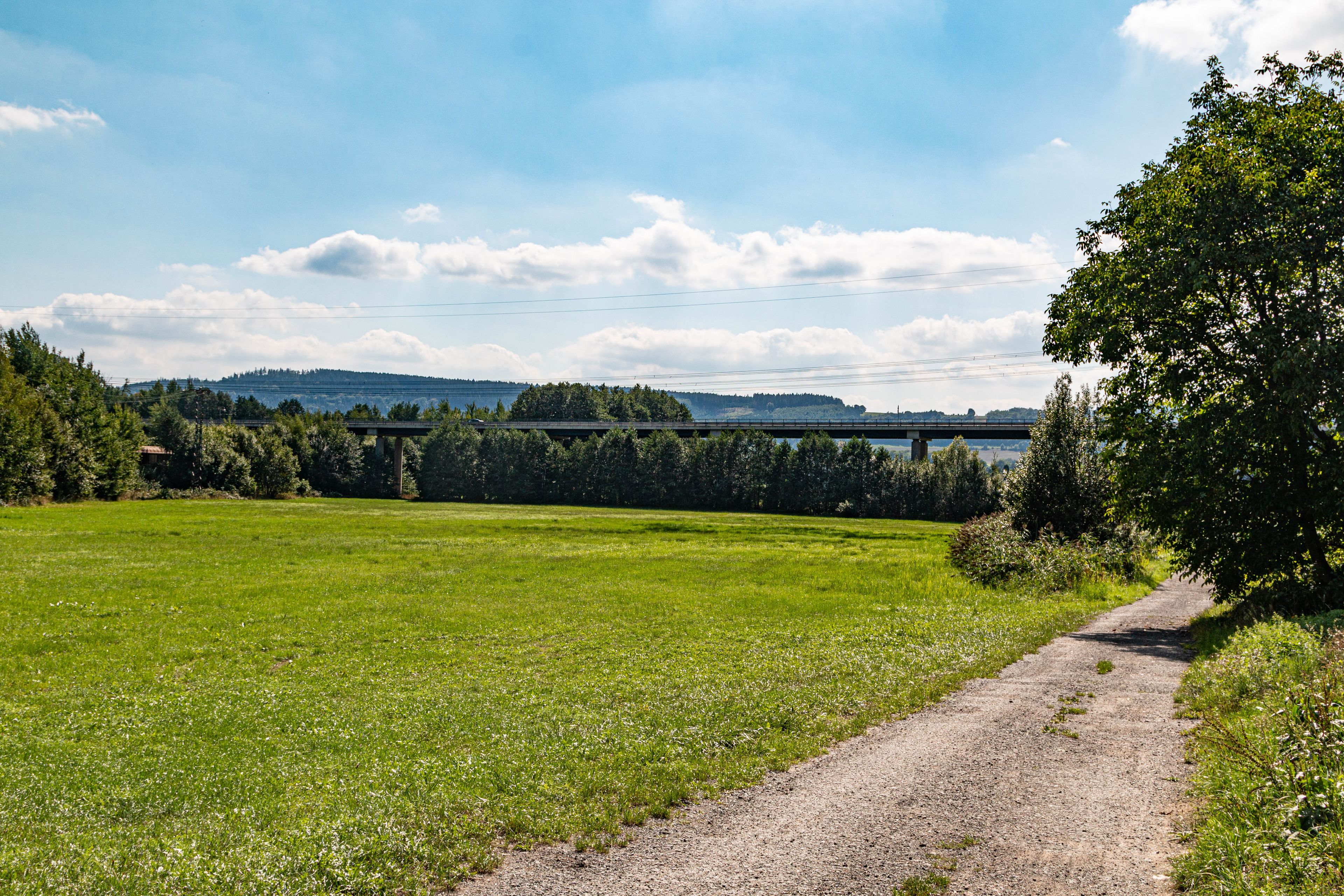 Esetakáda silnice I/14 přes údolí Zdobnice u Vamberka, most přes železniční trať, železniční vlečku, Zdobnici a místní komunikaci, na pomezí Vamberka a Doudleb nad Orlicí