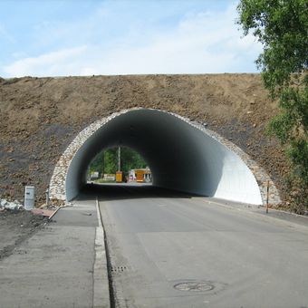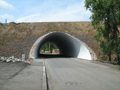 Most silnice I/56 přes Palackého ulici v Ostravě, podjezd náspem silnice I/56