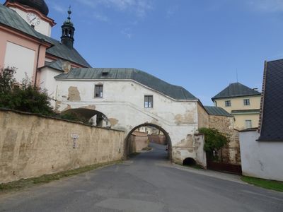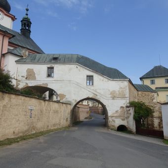 Mostní přechod mezi kostelem sv. Jana Křtitele a zámkem v Manětíně