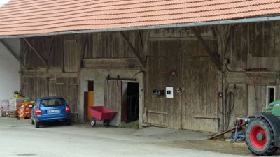 Stadel, zugehöriger Stadel, z. T. verschalter Ständerbau, Ende 18. und 19. Jahrhundert