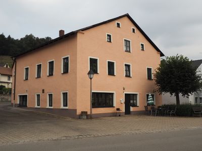 Ehemaliger Brauereigasthof, großzügiger, giebelständiger zweigeschossiger Satteldachbau in Jura-Bauweise, mit Kniestock, frühes 19. Jahrhundert, rückwärtig mit moderner Erweiterung