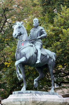 Luitpolddenkmal, reiterstatue aus Bronze auf hohem Steinsockel, 1899 von Ferdinand von Miller, ursprünglich vor dem Dom, 1979 am gegenwärtigen Platz aufgestellt