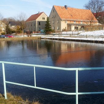 Unregelmäßig geformter Dorfteich Großerkmannsdorfer Straße (in Höhe der Straße nach Dittersbach)