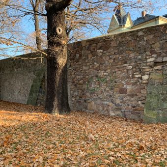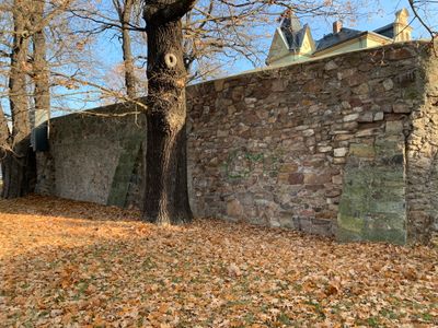 Mauerreste einer Burganlage Karrasstraße 4, Bruchsteinmauern der mittelalterlichen Karrasburg, geschichtlich bedeutend