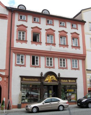 Marktplatz 22, traufseitbau, zweites Obergeschoss vorkragend, 17./18. Jahrhundert; vielleicht auf älterem Kern, Putzfassade und breiter Fenstereinbau im Erdgeschoss Ende 19. Jahrhundert; baulich verbunden mit Haus Nr. 24