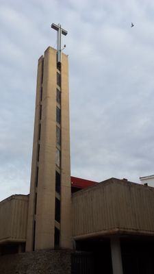 La chiesa include aule di catechesi al piano superiore, accessibili attraverso scale situate nella torre.
