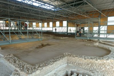Il triclinium presenta un mosaico di 230 metri quadrati che raffigura narrazioni mitologiche, tra cui le storie di Pelope, Ippodamia ed Elena di Troia.