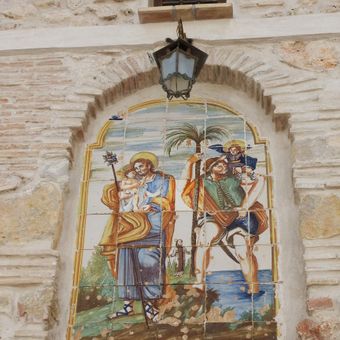 Ceramic panel of Saint Joseph and Saint Christopher, ceramic panel in l'Alqueria de la Comtesa