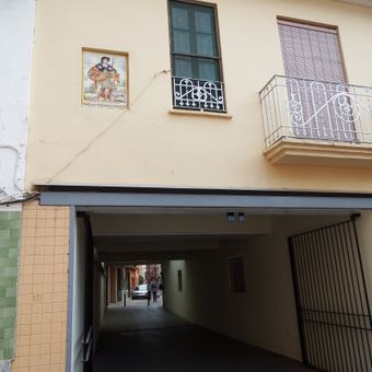 Ceramic panel of Our Lady of the Rosary at 18 Benlliure street