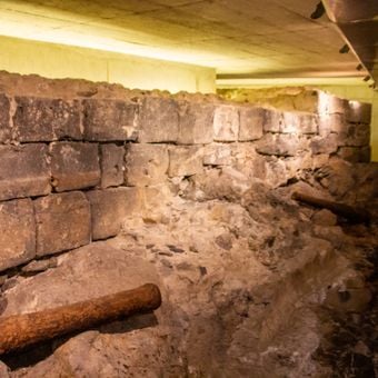 La galleria sotterranea sotto Plaza de España espone i resti delle mura del castello e offre visite guidate del sito.