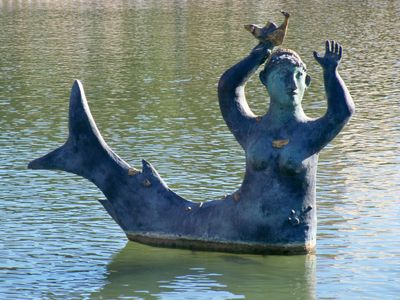 Sirena grande con pez, public sculpture in Malaga, Spain