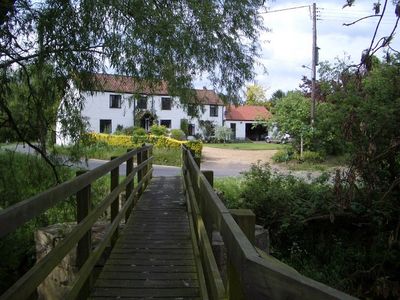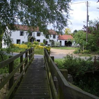 Footbridge at W end of village