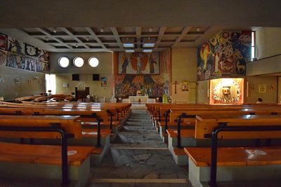Santa Maria Mater Ecclesiae si presenta come una struttura religiosa moderna con linee architettoniche pulite e interni luminosi in Piazza Cina.