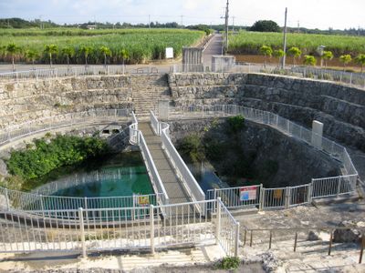 La struttura della diga previene l'infiltrazione di acqua marina mentre trattiene l'acqua dolce sotterranea nelle valli naturali formate da strati calcarei e Shimajiri.