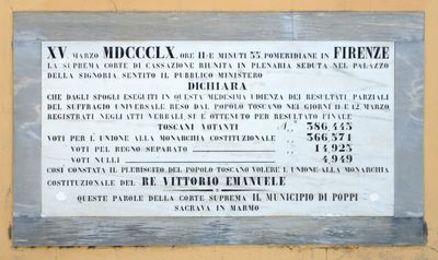 Targa per il plebiscito, targa commemorativa del Plebiscito del 1860 di adesione al Regno d'Italia a Poppi