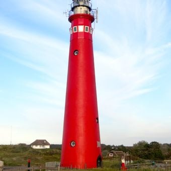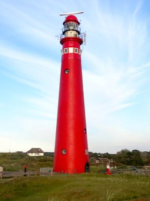 La Torre Nord si eleva per 37 metri sull'isola di Schiermonnikoog, con muri di mattoni dipinti di rosso e una struttura in ghisa.