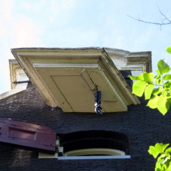Huis met gevel onder klokvormige top met rollagen