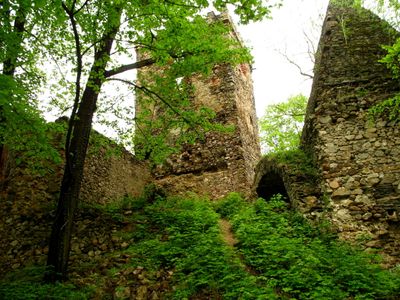 Castle in Lipa Górna, Castello gotico a Lipa, Polonia.