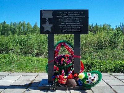 Памятный знак , на месте, где в ноябре 1941 г. совершил подвиг Герой Советского Союза В.Л. Полещук, удержавший позиции, отбив многочисленные атаки фашистов, historic site in Yandeba, Russia
