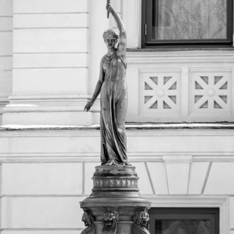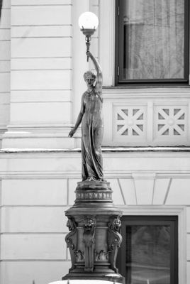 Night godness statue, statue, fountain and lamp in maison in Moscow