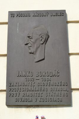 Divadlo Janka Borodáča, tabuľa pamätná s reliéfom, národná kultúrna pamiatka v Košiciach, okrese Košice I