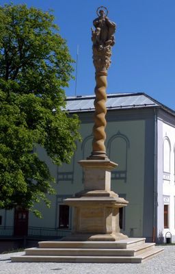 Nepoškvrnená Panna Mária, stĺp s podstavcom-kópia, národná kultúrna pamiatka v obci Spišská Belá, okrese Kežmarok