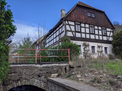Mostek přes Chlumecký potok k domu Metodějova čp. 15 v Chlumci