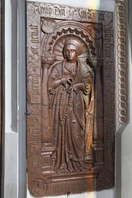 Grabstein für Anna Ecker, Grabstein in der katholischen Pfarrkirche St. Johannes in Dingolfing, einer Stadt im niederbayerischen Landkreis Dingolfing-Landau