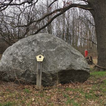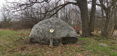 Glacial erratic rock near Birkenholz, Leipzig, geological natural monument in the urban area of Leipzig: glacial erratic rock near Birkenholz, district Breitenfeld
