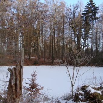 Eiche und Tümpel am Totenpfuhl