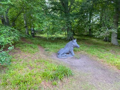 Balmoral Castle, Statue Of Florentine Boar, architectural structure in Aberdeenshire, Scotland, UK