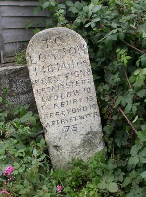 Milestone, milestone in Aymestrey, County of Herefordshire, UK