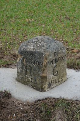 Milestone, on slip road to Leighton Bromswold and entrance to Catworth Gorse