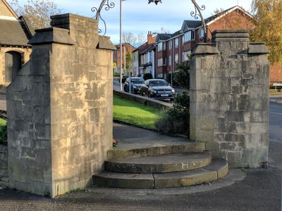 Churchyard Gateway 30 Metres West Of Church Of St Lawrence The Martyr, church gate in Mansfield, Nottinghamshire, UK
