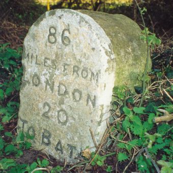 Milestone, Calne Road, S of new roundabout, between jct with Porte Marsh Industrial Estate and lane to High Penn Farm