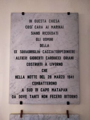 Lapide Battaglia di Capo Matapan 28/03/1941, lapide in memoria dei marinai caduti nella battaglia a sud di Capo Matapan il 28 marzo 1941