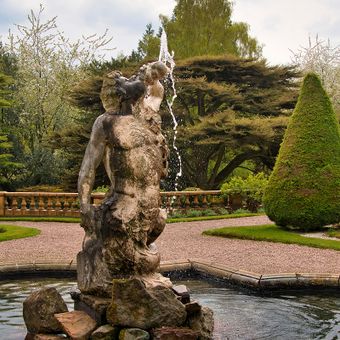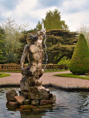 Pool wall and Triton Fountain in lower terrace garden before south front of Tatton Hall