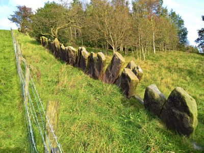 Remains of vaccary walls, wall in Trawden Forest, Pendle, Lancashire, UK