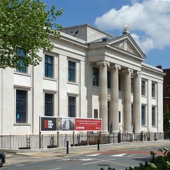 Gli Uffici Municipali di Bermondsey presentano una facciata con nove finestre, blocchi di pietra squadrata e un parapetto in stile neoclassico greco.