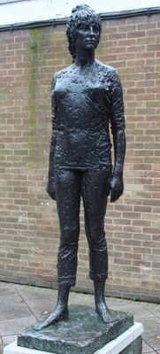 Portrait figure of Elisabeth Frink, sculpture by F. E. McWilliam in Harlow, Essex, England