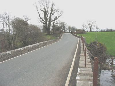 Pont Bodfel, Grade II listed building in Gwynedd. The bridge carries the major road N from Pwllheli to Nefyn over the Afon Rhyd-hir, some 900m N of Efailnewydd